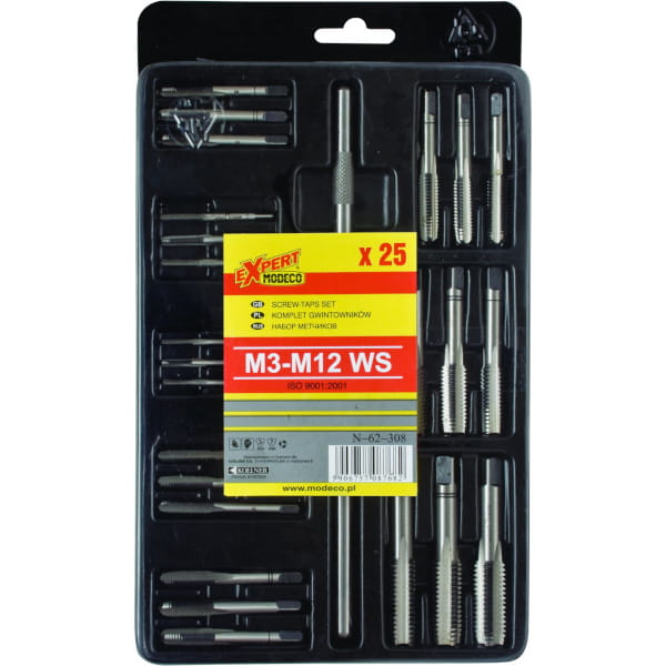 Gwintowniki w zestawie 25 szt. od M3 do M12, wykonany ze stali WS Modeco MN-62-308
