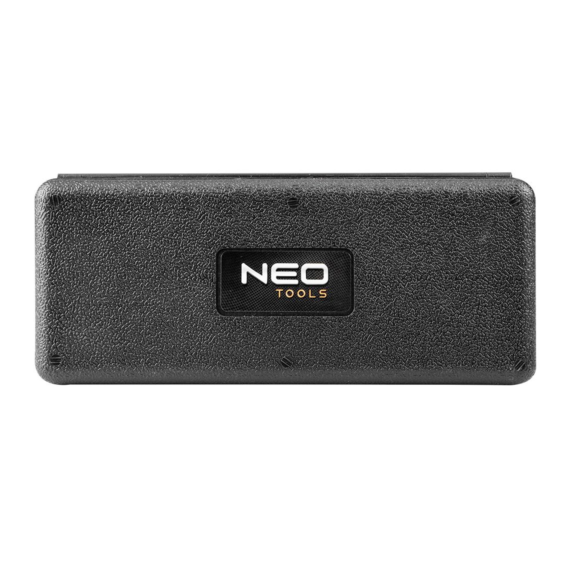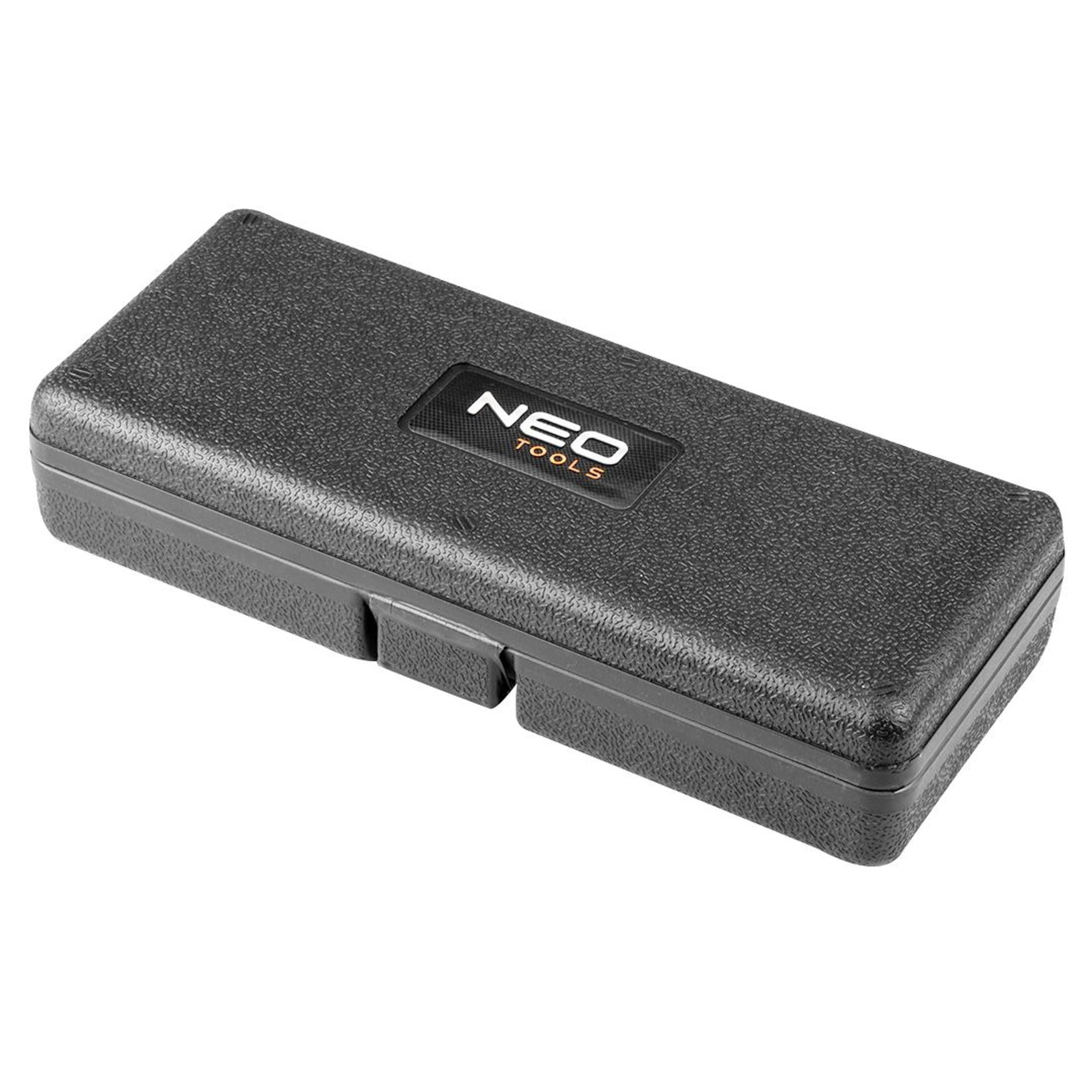 Dodatkowo, zestaw kluczy nasadowych do sondy lambda marki NEO jest dostarczany w praktycznej walizce, ułatwiającej przechowywanie, organizację i transport narzędzi.