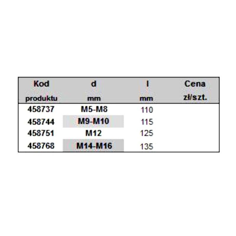 Przedłużka dostępna do gwintowników ręcznych o rozmiarach M5 do M8, M9 do M10, M12 i M14 do M16.