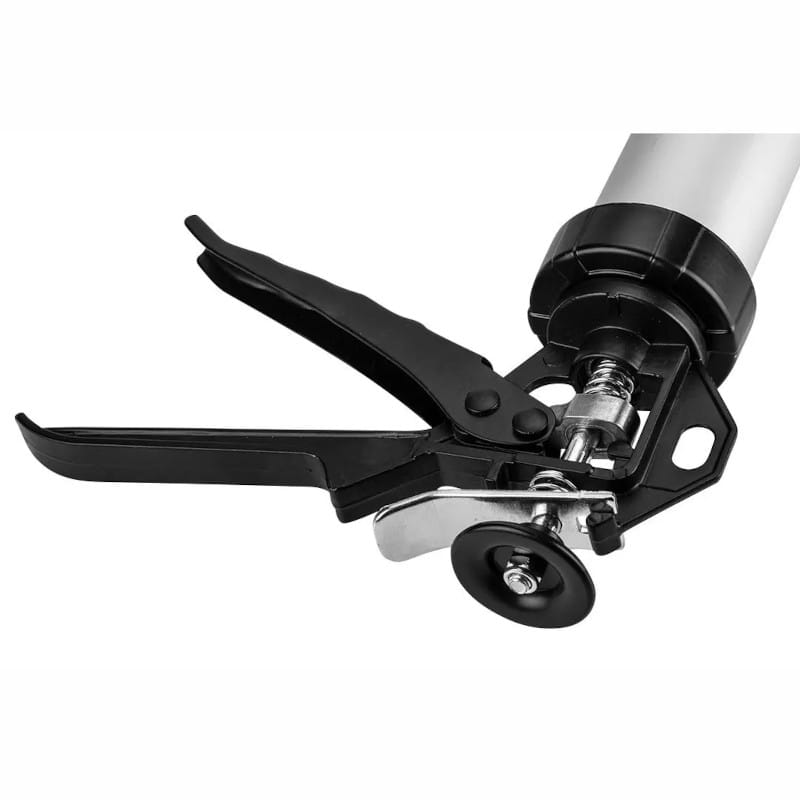 Posiada obrotową stalową tubę umożliwiającą dojście do trudno dostępnych miejsc, jednocześnie ochraniającą pojemnik z silikonem.
