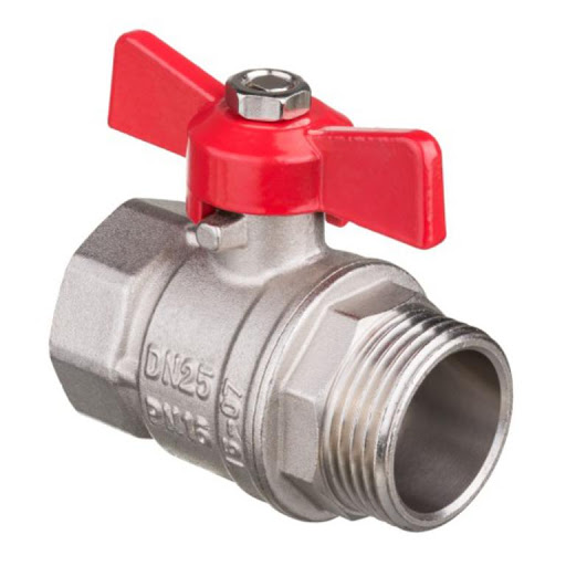 Kompaktowy zawór kulowy z gwintem wewnętrznym–zewnętrznym i wygodnym uchwytem motylkowym.