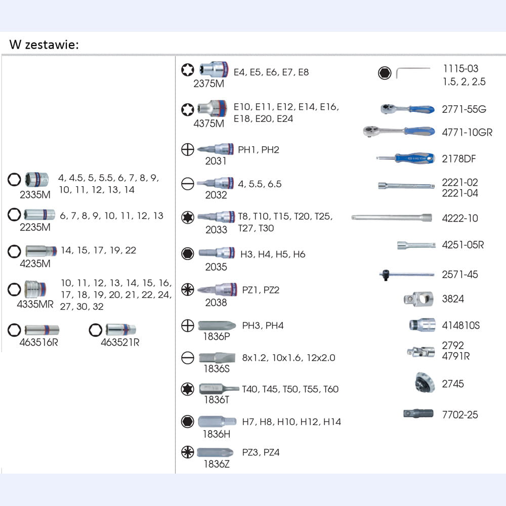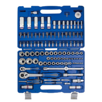 ZESTAW NASADEK 1/4""+ 1/2"" 110cz. 4 - 32mm 6-kąt. Z AKCESORIAMI, CHROM+NARZĘDZIA UNIWERSALNE W WALIZCE PLAST. KingTony 7511MR