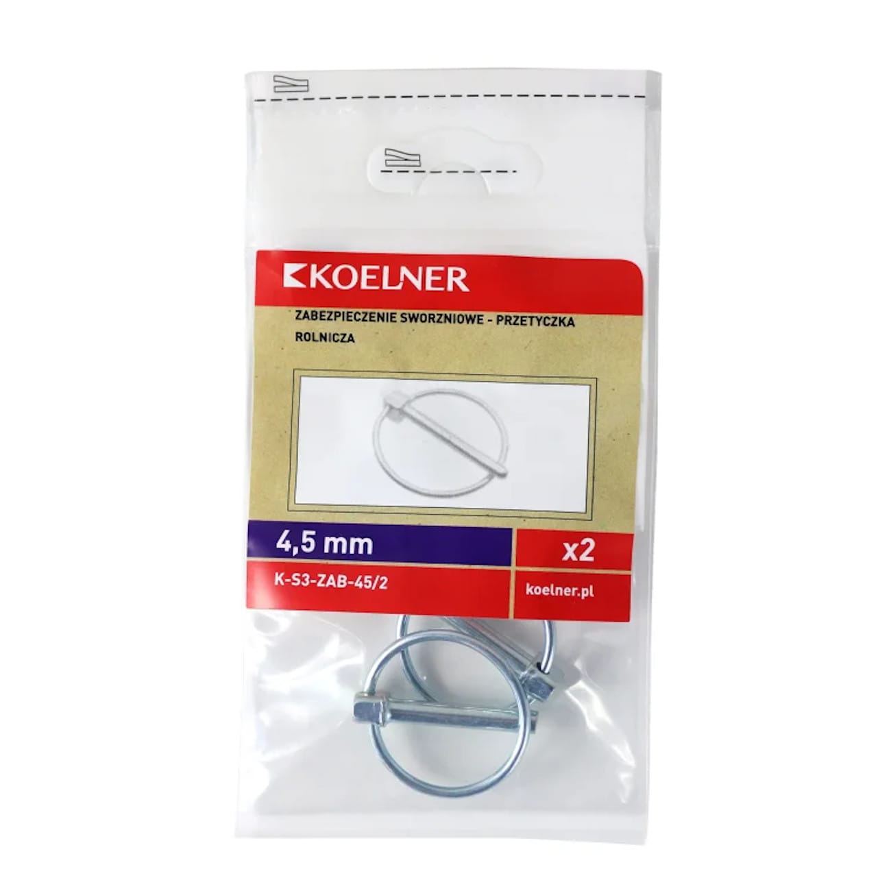 Zabezpieczenie sworzniowe - przetyczka rolnicza 4,5mm, 2szt KOELNER K-S3-ZAB-45/2